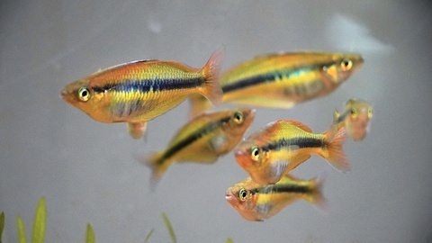 Eager spawners. Provide a mop and free swimming fry will appear in about 10 days. Parents rarely eat fry which is abnormal for rainbows.