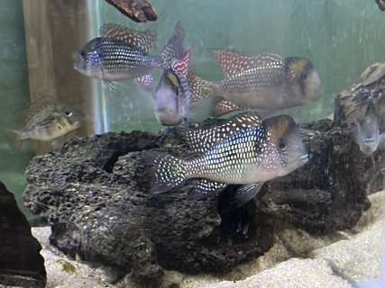 Moved the female 2x over the last few weeks and she dutifully protected her small brood of ~12 fry and h lose them grow. Aside from spitting them out each time she was netted she’s been an exemplary mom. Fry feast on BBS and they are less inclined to go to mom’s mouth for cover.