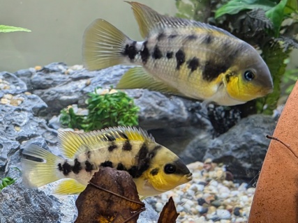 First spawn was two days after I received the fish. Added a flower pot and some cover and the next day there were eggs. The male and female work together to rear the fry. A very prolific species.