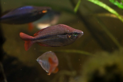 Description: Larger melanotaenia hailing from Morehead River in Cape York. They are a unique rainbow that have striking pinkish red finnage and body. When not fired up have a duller opalesk appearance. Males tend to be larger with more striking coloration on the body.